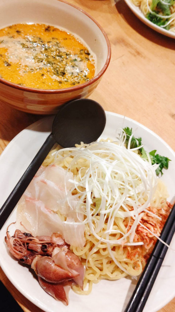 この日は、つけ麺を頼みました。寒かったので暖かいのを頼みました。七味がすごく聞いていておいしかったです。